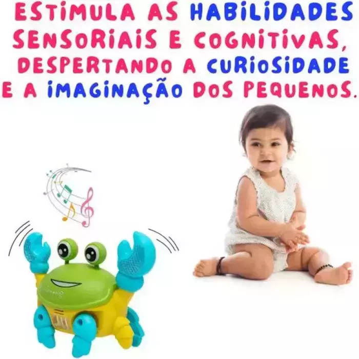 Apresentamos o Caranguejo Fujão, o brinquedo perfeito para bebês! Este caranguejo interativo é projetado para auxiliar no desenvolvimento e coordenação motora das crianças de maneira divertida e envolvente.